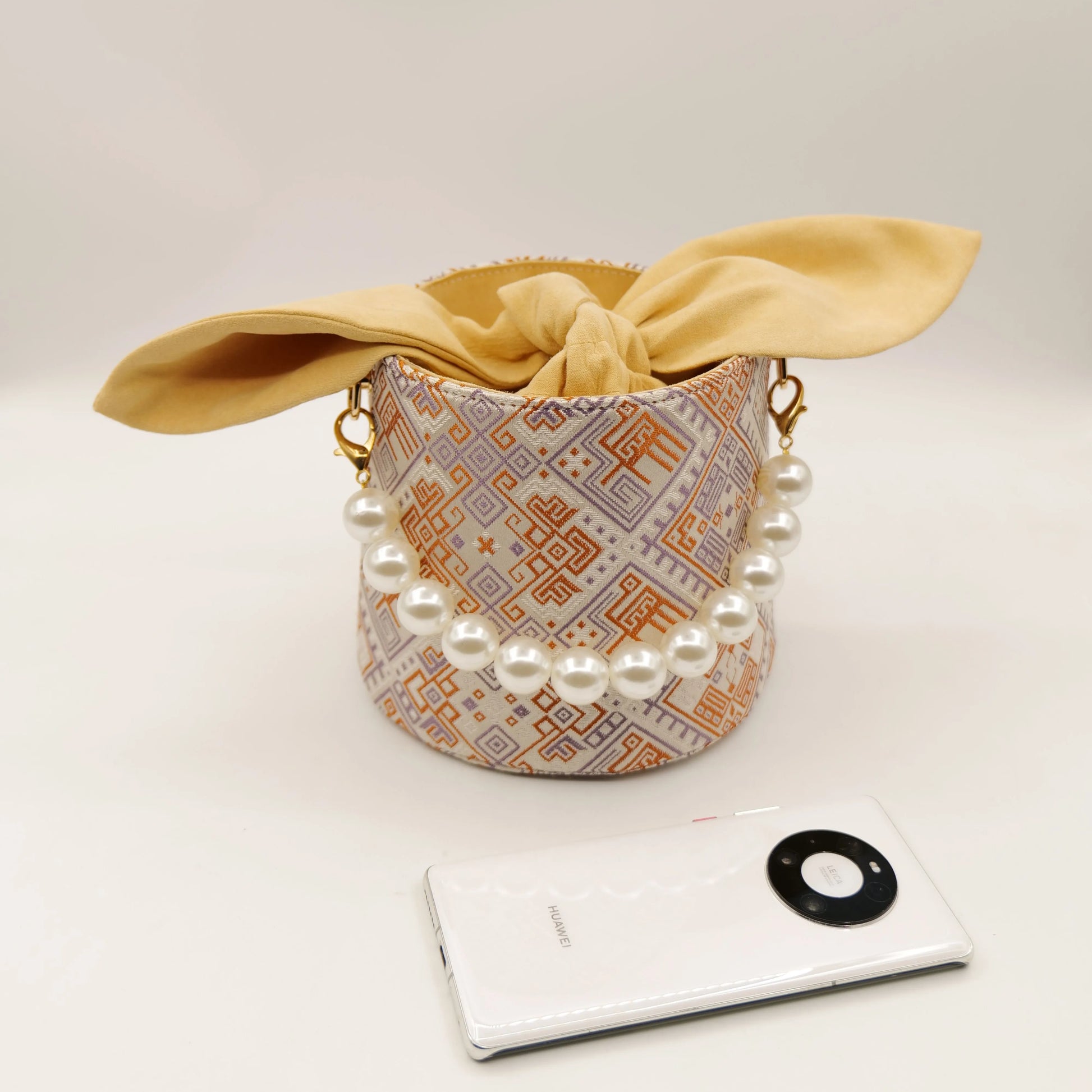 Guangxi Zhuang Brocade Rabbit Ear Pearl Bucket Bag Cute Handbag Crossbody Bag