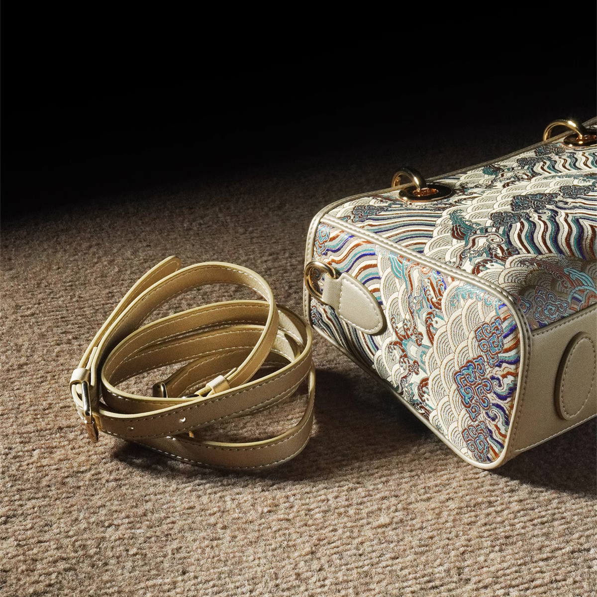 New Chinese style seawater river cliff cowhide handbag 2025 new large national style brocade commuter messenger women's bag