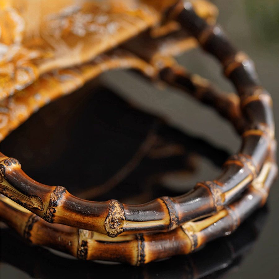 Panda lion dance heavy Song brocade intangible cultural heritage silk bamboo bag handbag Chinese style gold niche shoulder handbag