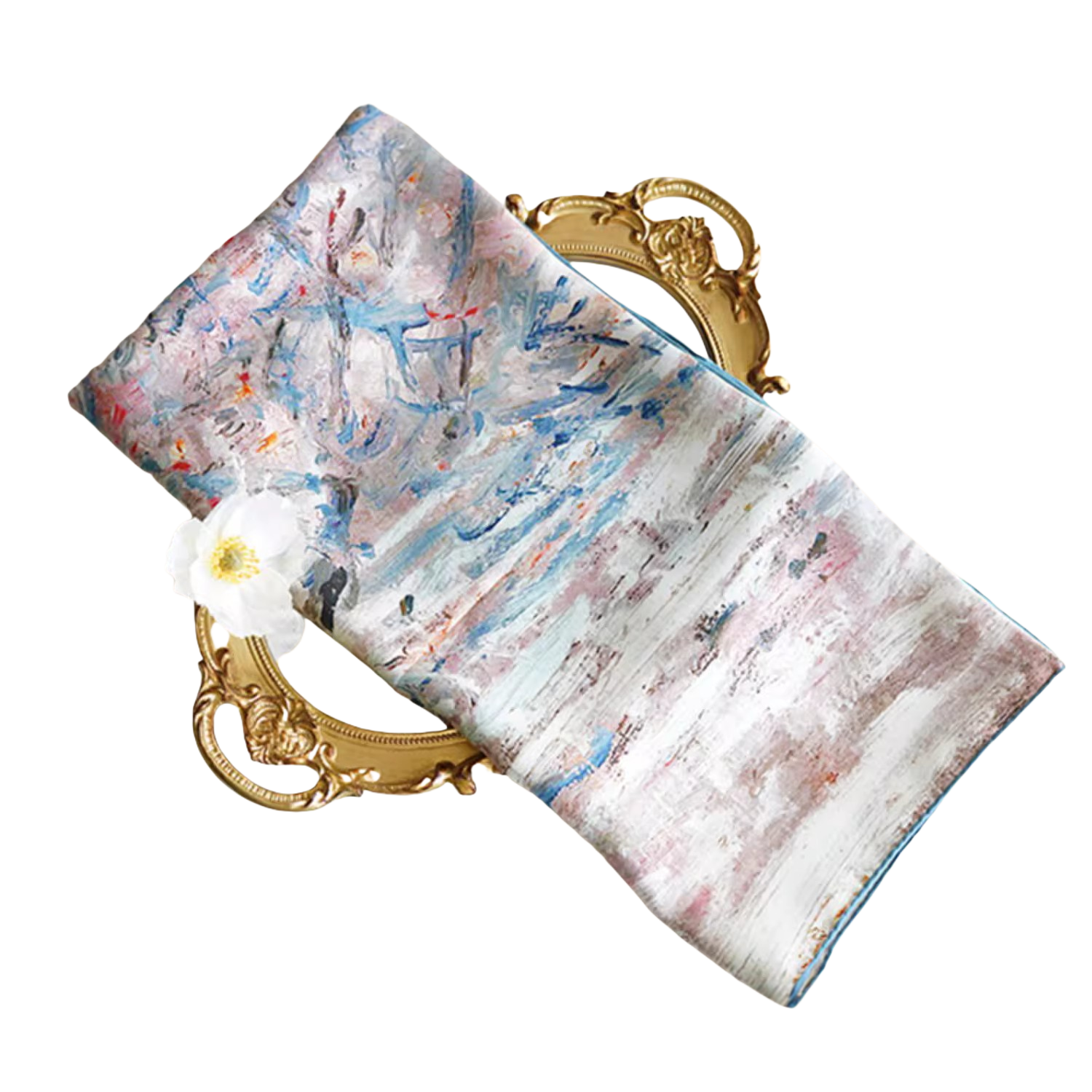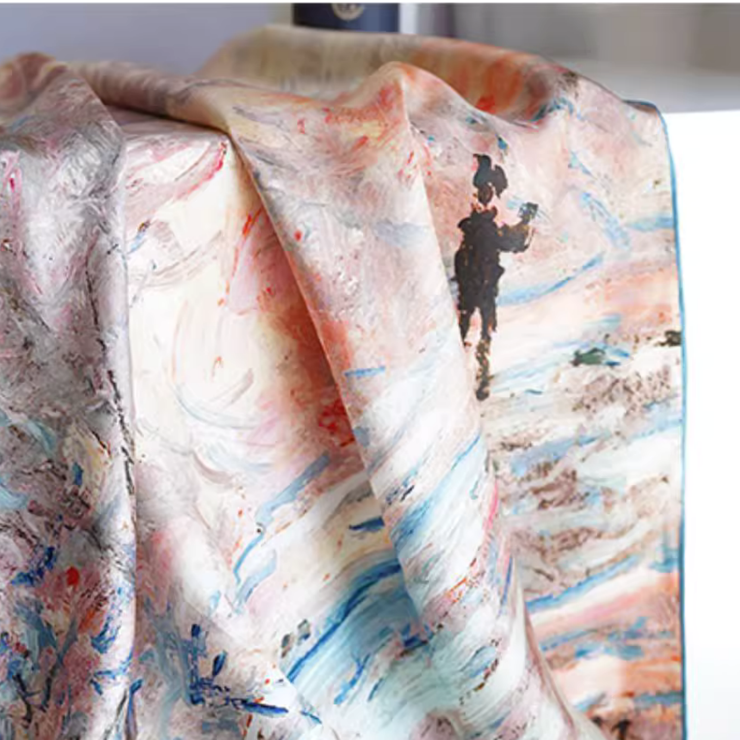 "Snow" Monet Oil Painting Series Double-sided Different Color Printed Twill Silk Large Square Scarf Women's Winter Mulberry Silk Scarf